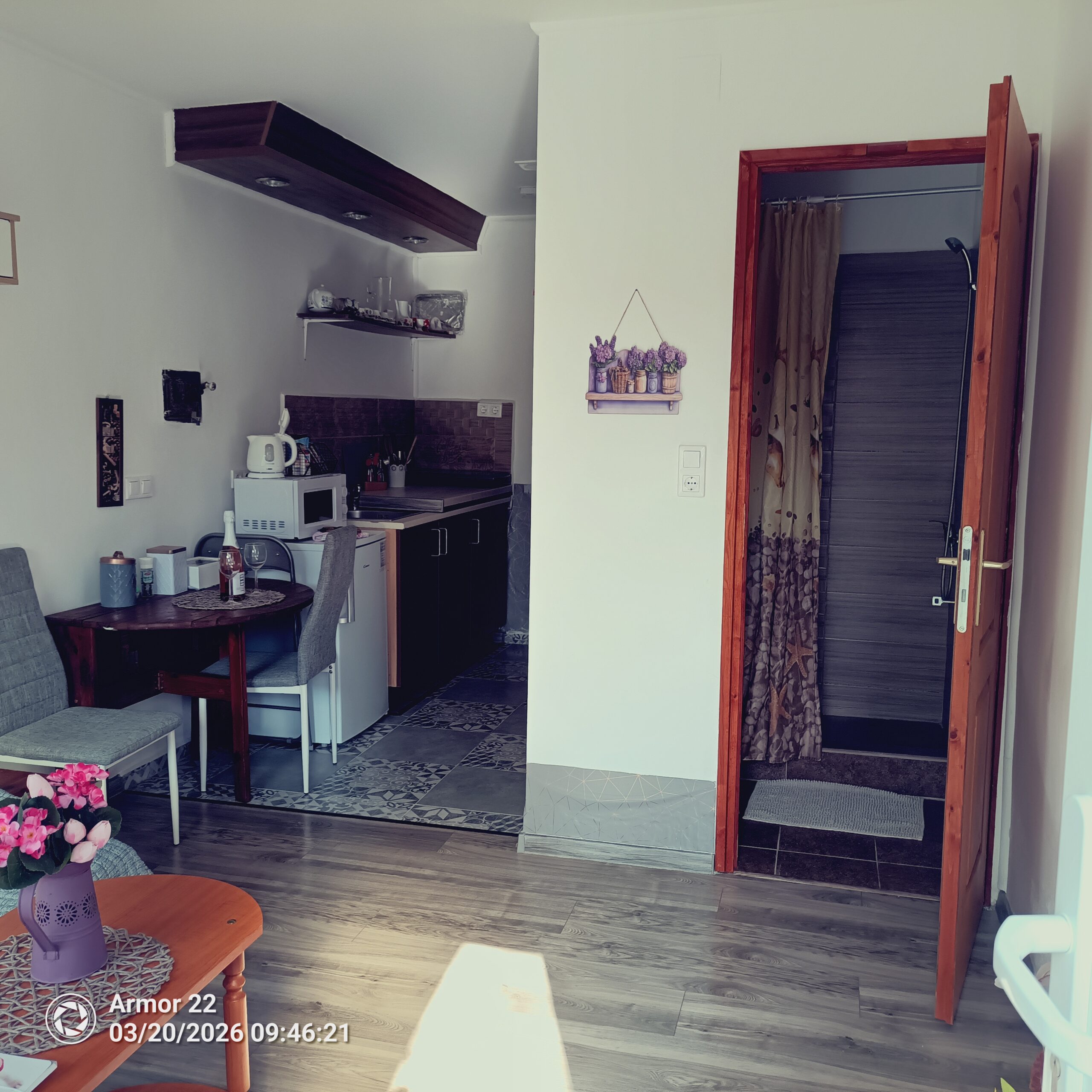 Az apartman saját házunk udvarán helyezkedik el de a teljes nyugalom érdekében teljesen elszeparálva másik utcáról hátsó bejárattal saját zárt parkolóval közvetlenül az apartman bejáratánál. Igyekeztünk mindent úgy kialakítani hogy az ide érkezők semmiben se szenvedjenek hiányt.